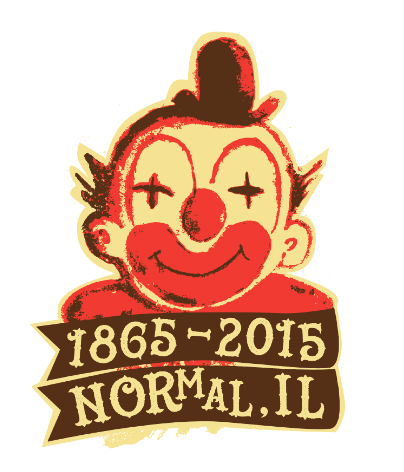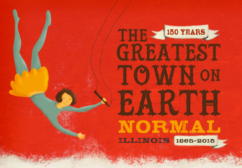 Town of Normal 150 Year Celebration Materials for the Normal Illinois 150 year Celebration Event Poster Logo T-shirt Logo design Illustration promotion 150 years image, also used as standup. Promotional ad illustration of trapeze Main poster Events poster